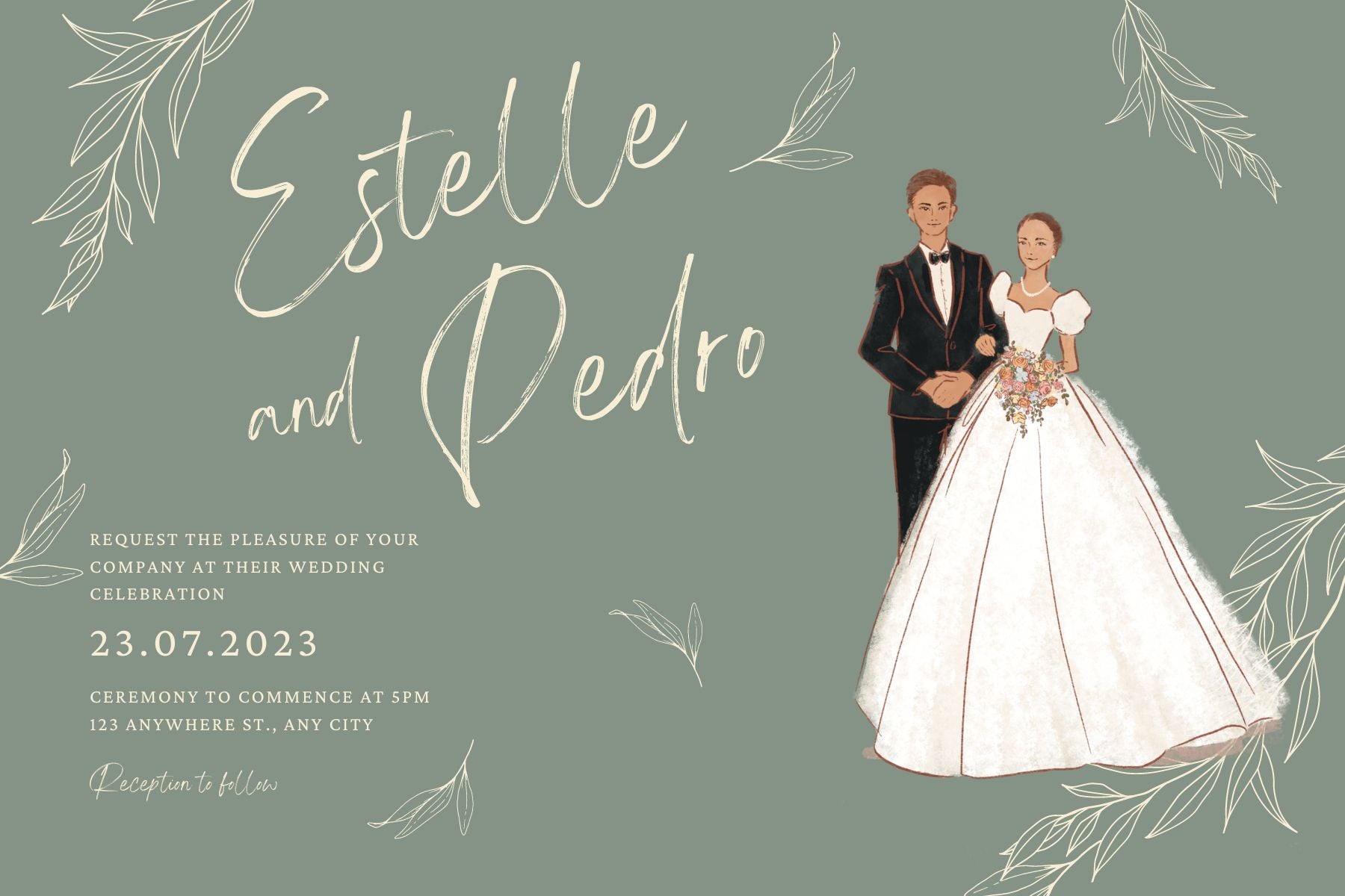A custom watercolor-style art of the bride and groom, or the wedding venue. Perfect for using on invitations, stationaries, favors, table décor and more!